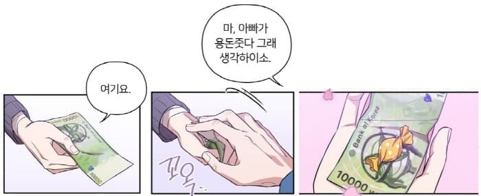 유지혁은 강지원을 좋아하고 있었고 그 1만 원을 고이 간직하고 있다가 그 1만 원에 하트를 그려 넣는다.